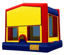 The Ninja Jump red, blue and yellow  Module House  is  perfect for all size gatherings of friends! Classic styling,  and interchangeable art panels make the Module House a great choice for those looking to have more variety with their theme. Rent it without the art panels or choose from Treasure Island, Sea World and much more!